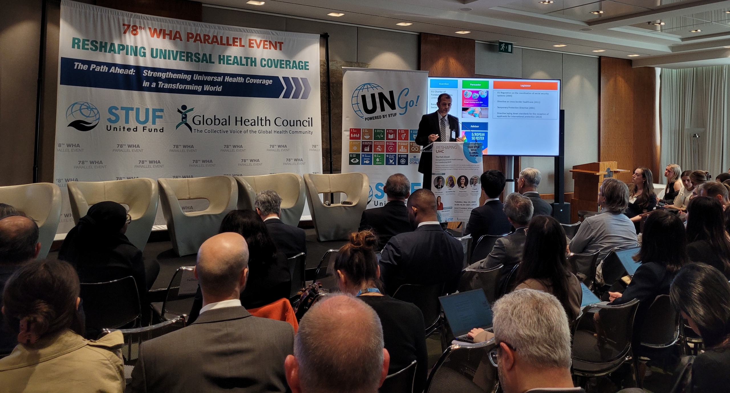 世界衛生大會(WHA)開議期間,世台聯合基金會(STUF United Fund, Inc.)於5月20日在瑞士日內瓦威爾遜總統酒店舉辦「2025 WHA全球論壇─重塑全民均健(Universal Health Coverage, UHC)」。此論壇由該基金會與全球健康理事會(Global Health Council, GHC)共同主辦,展現台灣民間社會積極參與多方利害關係人平台的努力,為全球推動全民均健注入台灣視角與經驗。