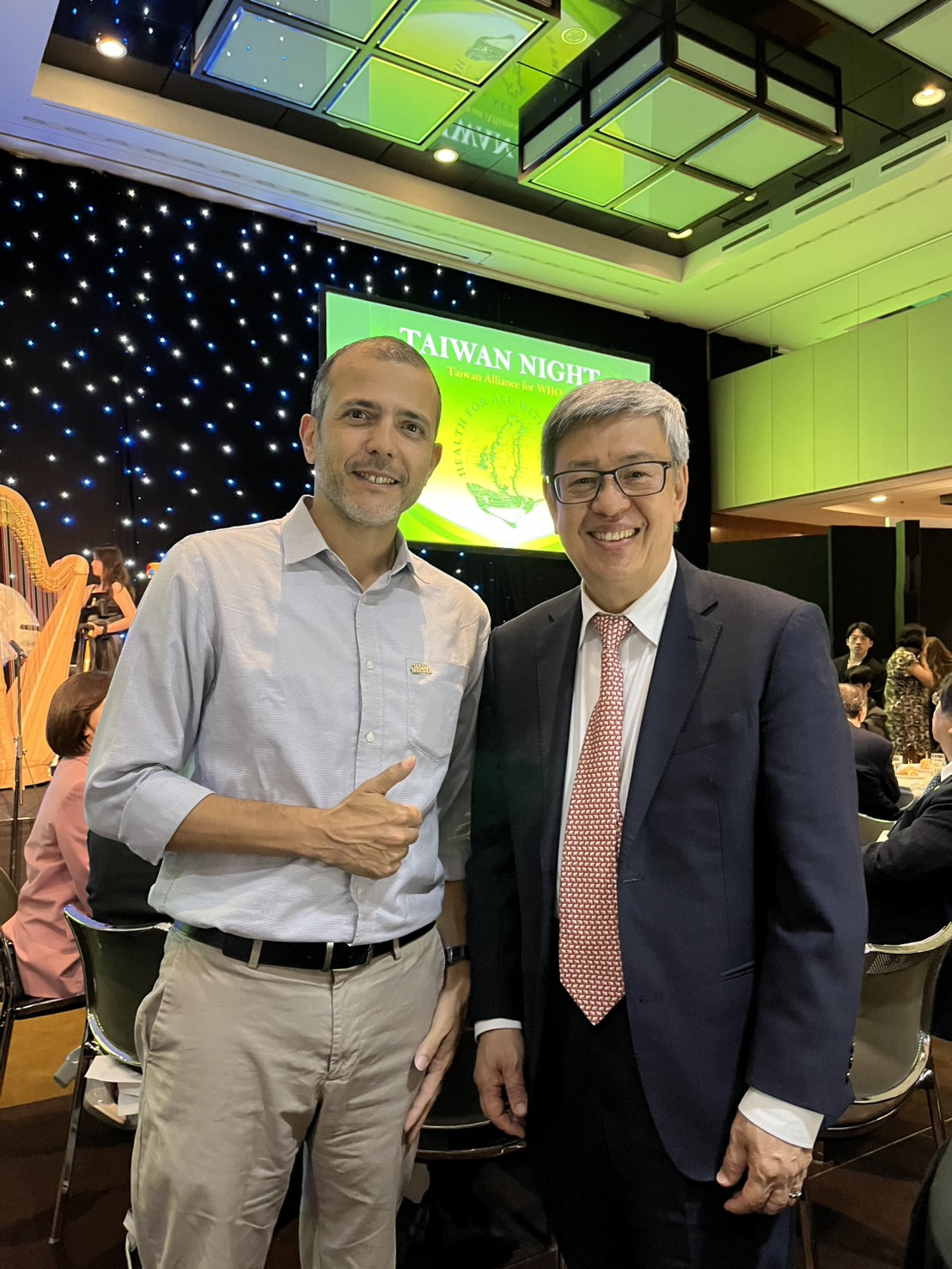 文藻外大羅文笙教授(左)與陳建仁前副總統(右)合影 |