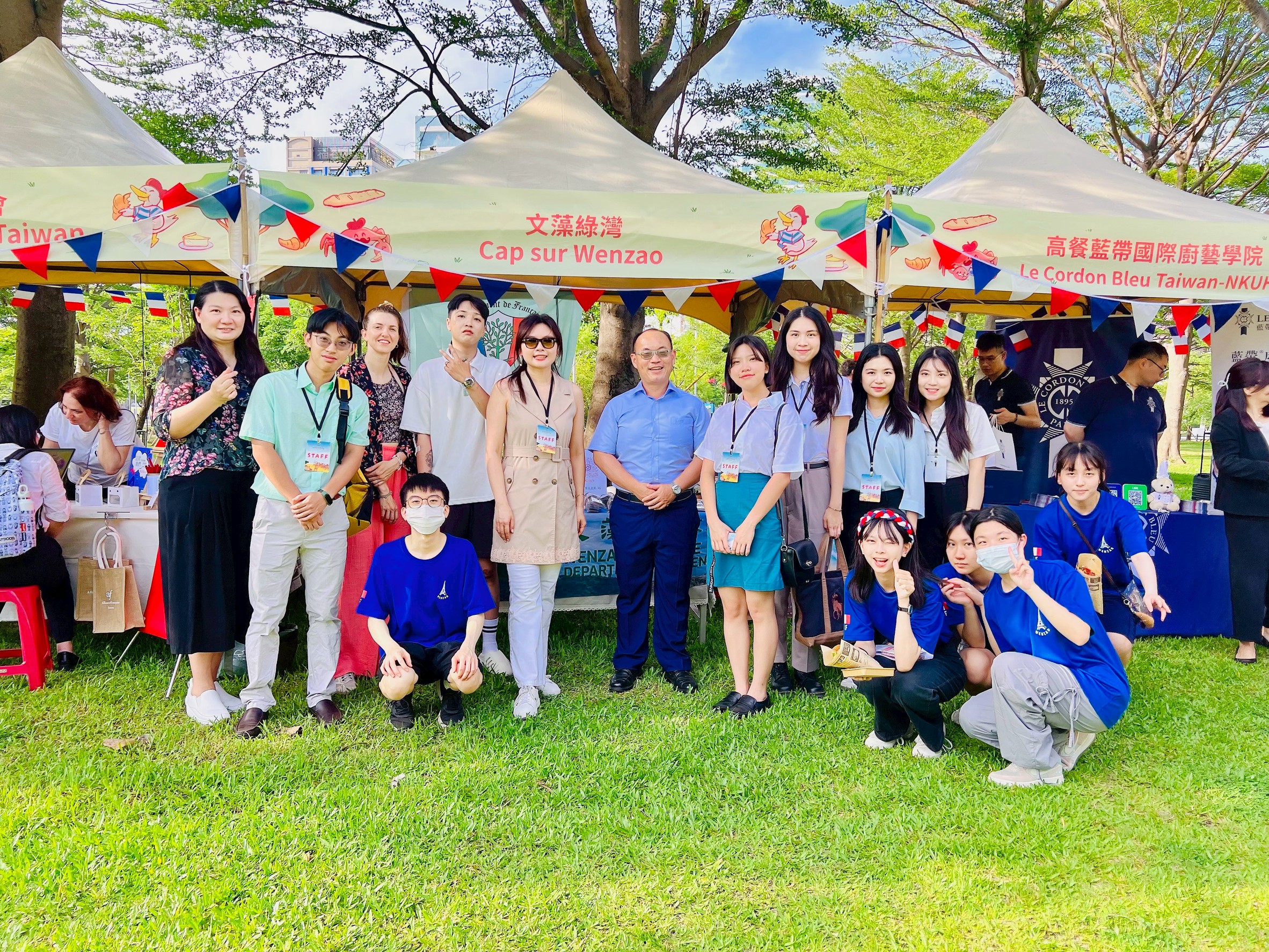 文藻外語大學參與本屆活動,從籌備、貴賓接待、現場翻譯到主題攤位展出,全程投入,充分展現語言專業與國際溝通實力,成為促進台法文化互動與城市行銷的重要推手。文藻外大校長莊慧玲親臨現場,為參與的師生加油打氣,並給予高度肯定。