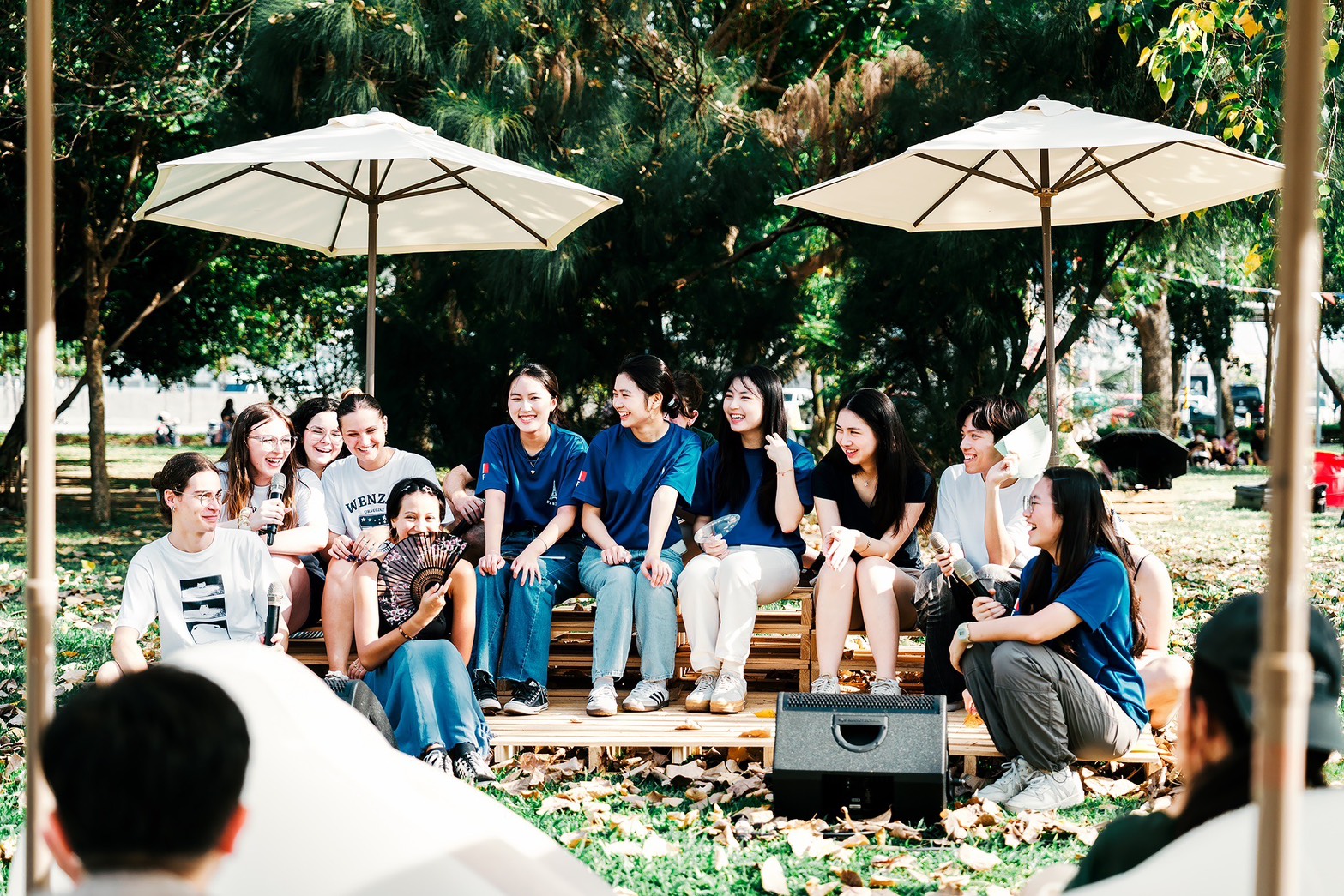 文藻外大設置文化體驗攤位「文藻綠灣」(Cap sur Wenzao),提供桌遊、交換生分享學習心得及法國香頌表演等互動節目,成功為城市行銷。相片提供/法文系