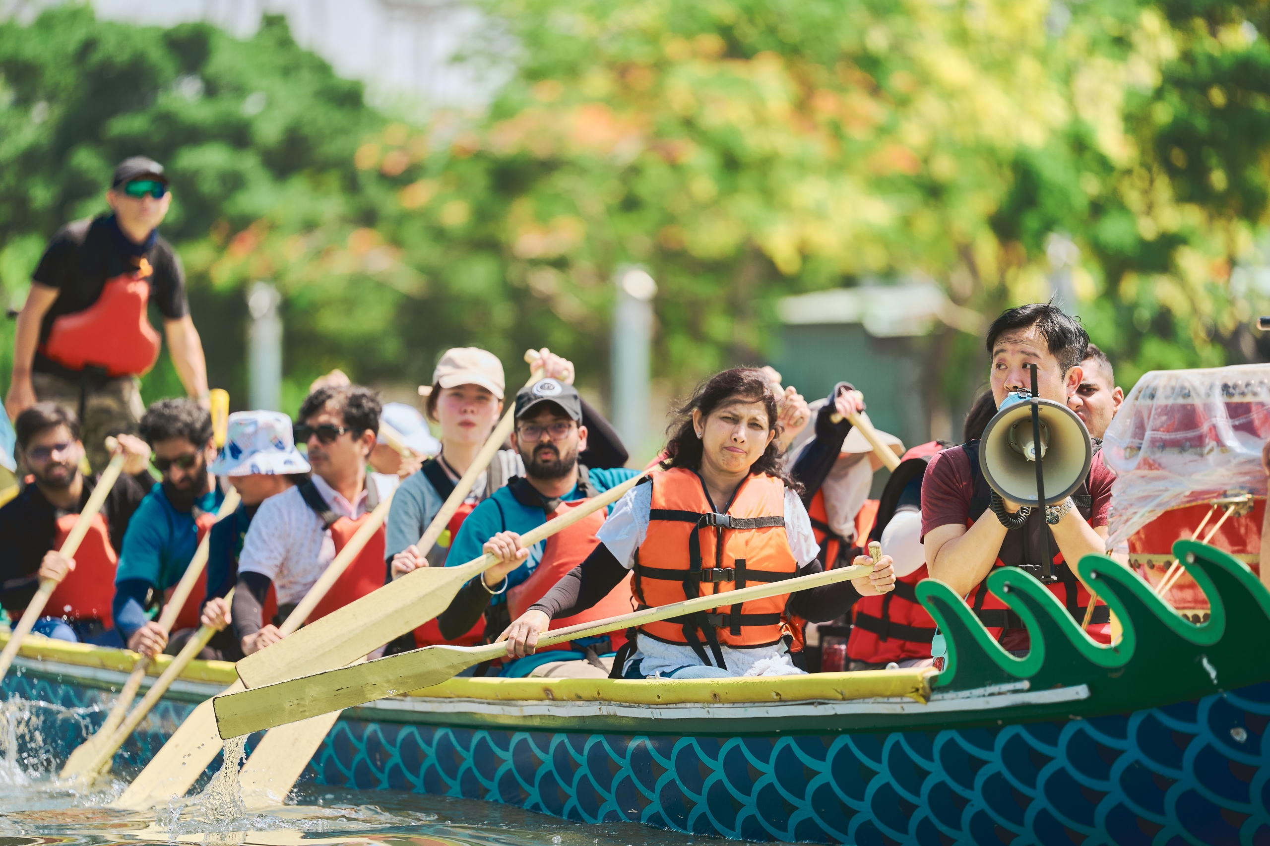 2025高雄端午龍舟嘉年華日前盛大舉行,活動吸引多國駐台使節與國際友好城市代表參與,為高雄港都注入濃厚節慶與國際交流氛圍。文藻外語大學翻譯系繼去年參與口譯服務後,今年再度獲邀,由2名師長帶領7名學生,擔任現場多國語口譯任務,展現深厚的語言實力與臨場應對能力。