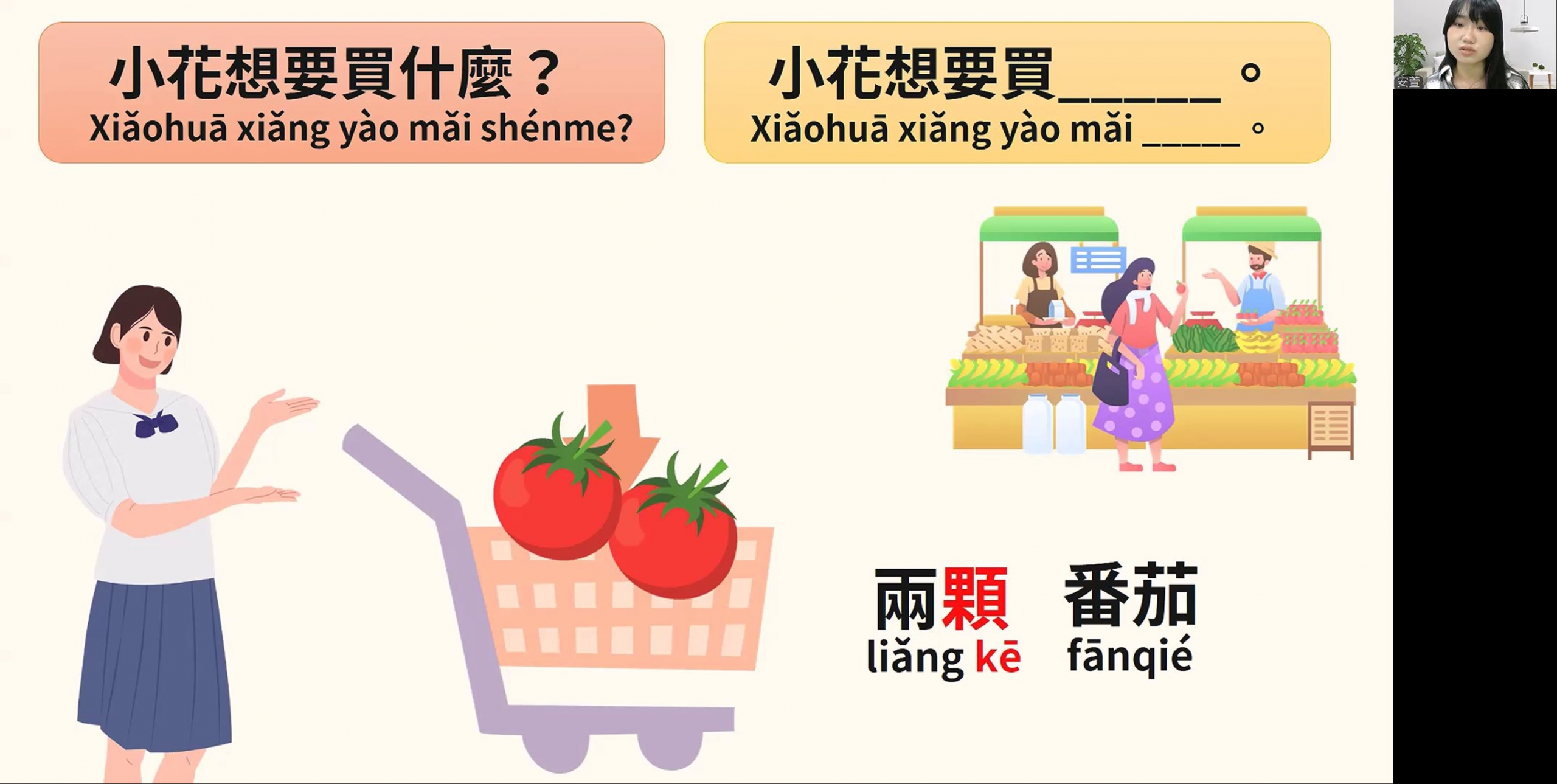 由靳昕恬老師教授的「線上華語課程」〈漢語拼音班〉上課畫面 |