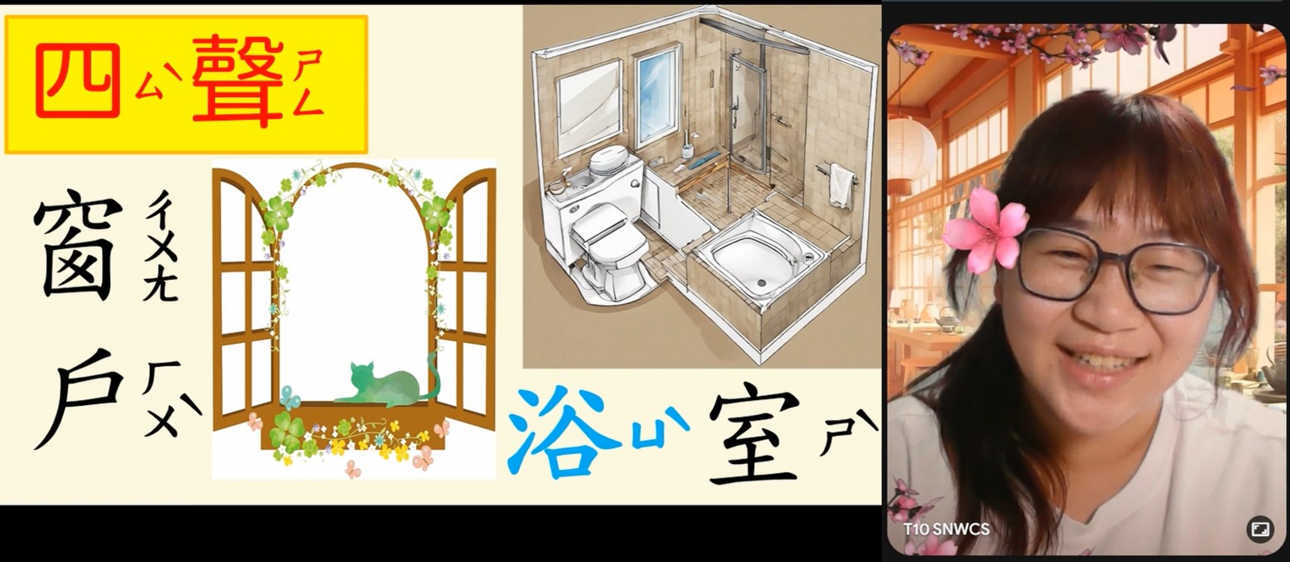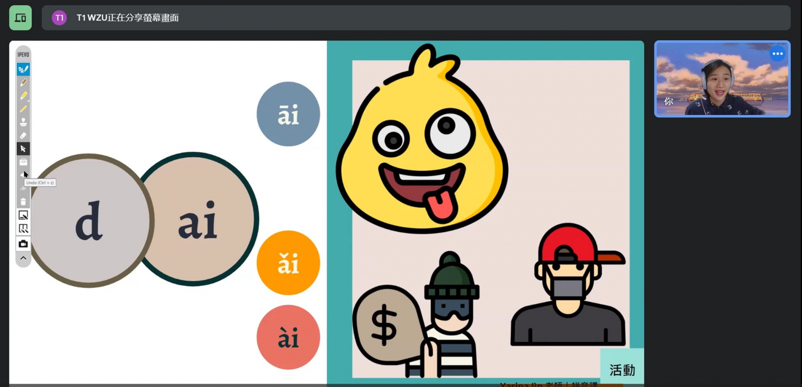 由黃郁菁老師教授的「線上華語課程」〈注音符號班〉上課畫面 |