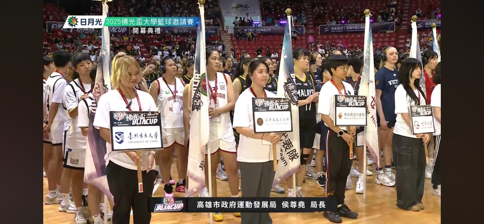 7月上旬佛光盃賽事中,李謦芳與翻譯系大四學生劉芷寧、徐韻淳,分別支援不同國際隊伍。劉芷寧陪同菲律賓國家大學隊,從球隊行程安排到臨場比賽溝通都全程參與。她回憶說,在某場比賽中裁判臨時要求翻譯,讓她感受到自己彷彿也是比賽的一部分。短短幾天,她與球員們建立深厚情誼,賽後道別時更是難掩不捨之情。