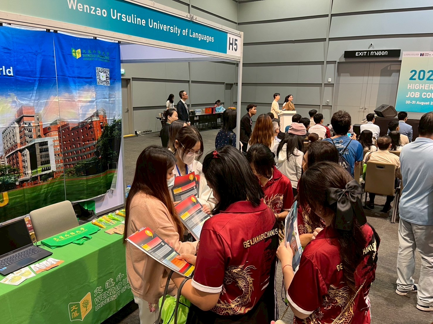 此行,文藻外大團隊也參與了由42所台灣大專校院共同出席的泰國教育展,近距離與泰國學生及家長交流,並藉此介紹文藻的辦學特色與學習資源,大大提升文藻在當地的能見度與招生成效。
