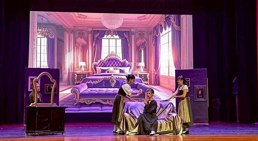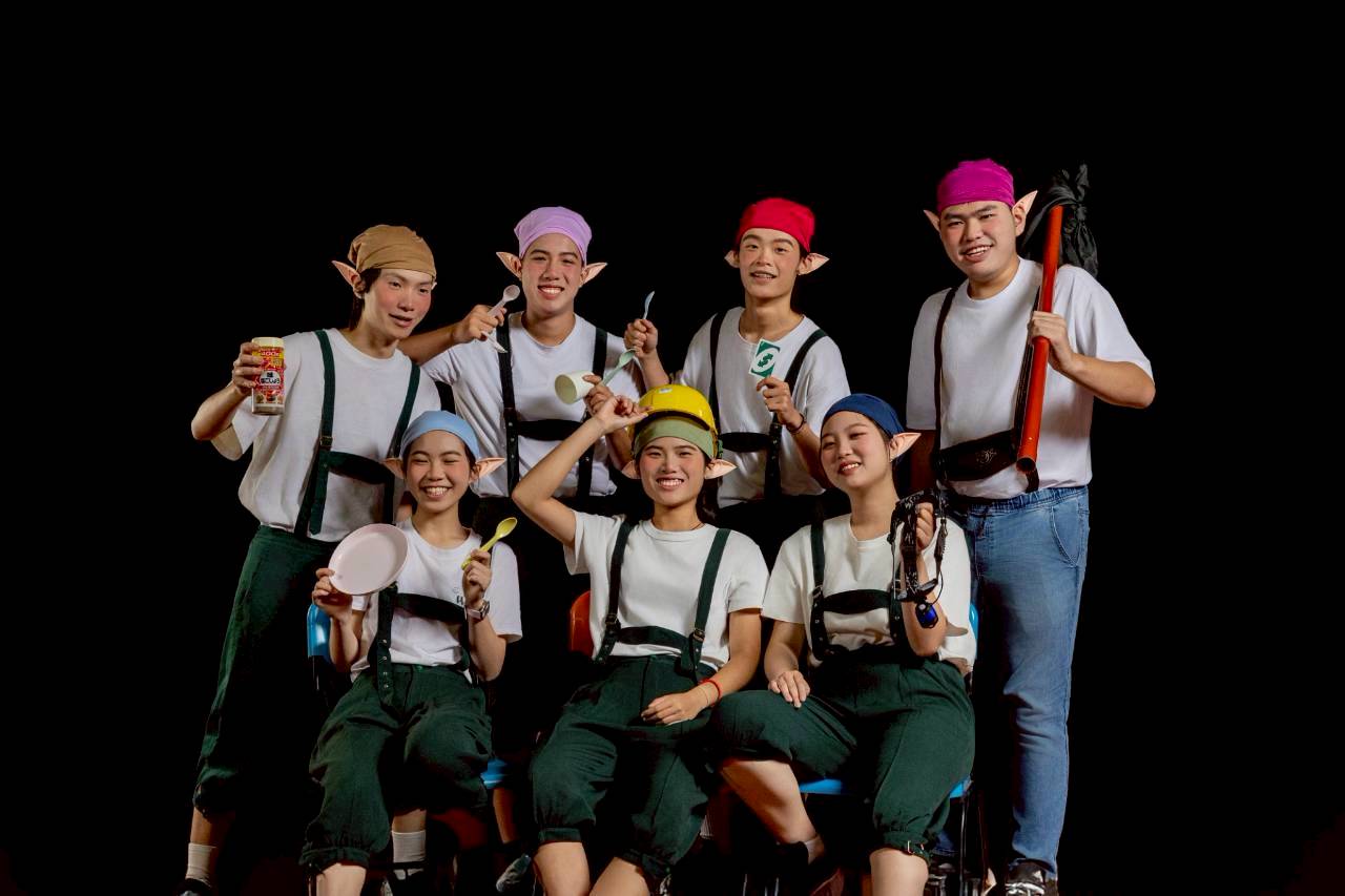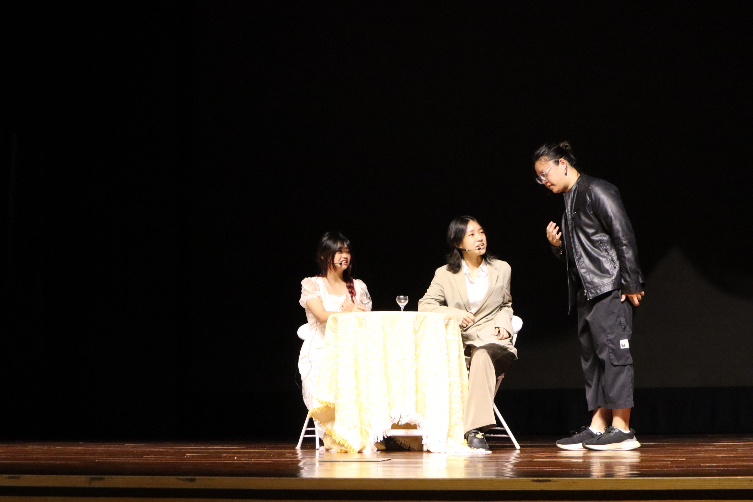 德文科戲劇公演改編自格林童話《白雪公主》,學生將故事大改造,把發生背景設定在社群媒體盛行的時代。劇中,小矮人透過交友軟體與白雪公主相戀,然而白雪公主深陷嚴重的容貌焦慮,始終覺得自己不夠美麗,甚至不惜一切代價嘗試各種改變外貌的方法。皇后因嫉妒白雪公主的美貌而心生歹念,命令獵人將她除掉。某次偶然間,皇后發現白雪公主竟將自己視為仰慕對象,這才驚覺阻礙她成為最美麗女人的真正原因,其實是內心深處的嫉妒與扭曲。在社交媒體滲入日常生活的今日,「美」與「比美」的焦慮更為強烈。此劇透過經典故事的現代詮釋,呈現當代人面對「外貌與自我價值」的矛盾與掙扎,期盼能藉此引發觀眾省思。