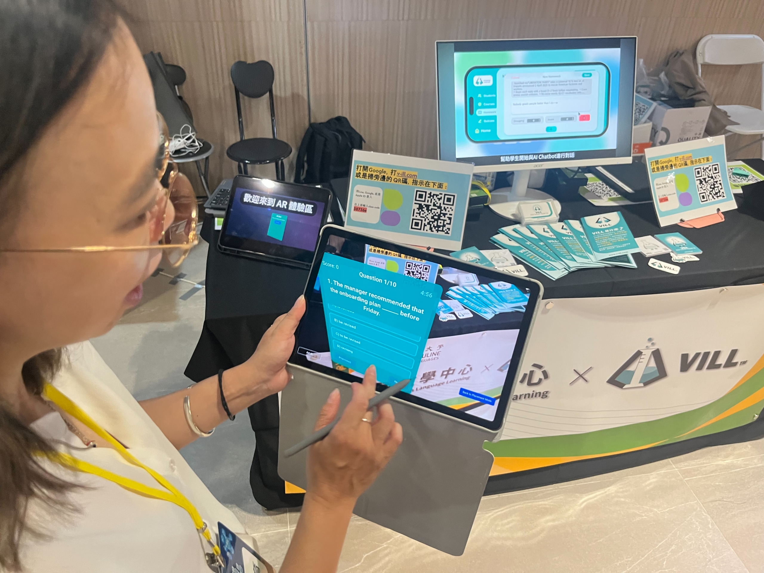 VILL是一套結合AI聊天機器人與AR互動功能的語言學習平台,能與學習管理系統(LMS)協同運作,將教師自製教材轉化為互動式智慧數位內容,提供即時且個別化的學習回饋。文藻英語教學中心近年積極將該平台導入共同英文及專業英文(ESP)課程中,透過虛擬情境任務、口語互動練習與行動化學習設計,有效提升學生學習動機與成效。
