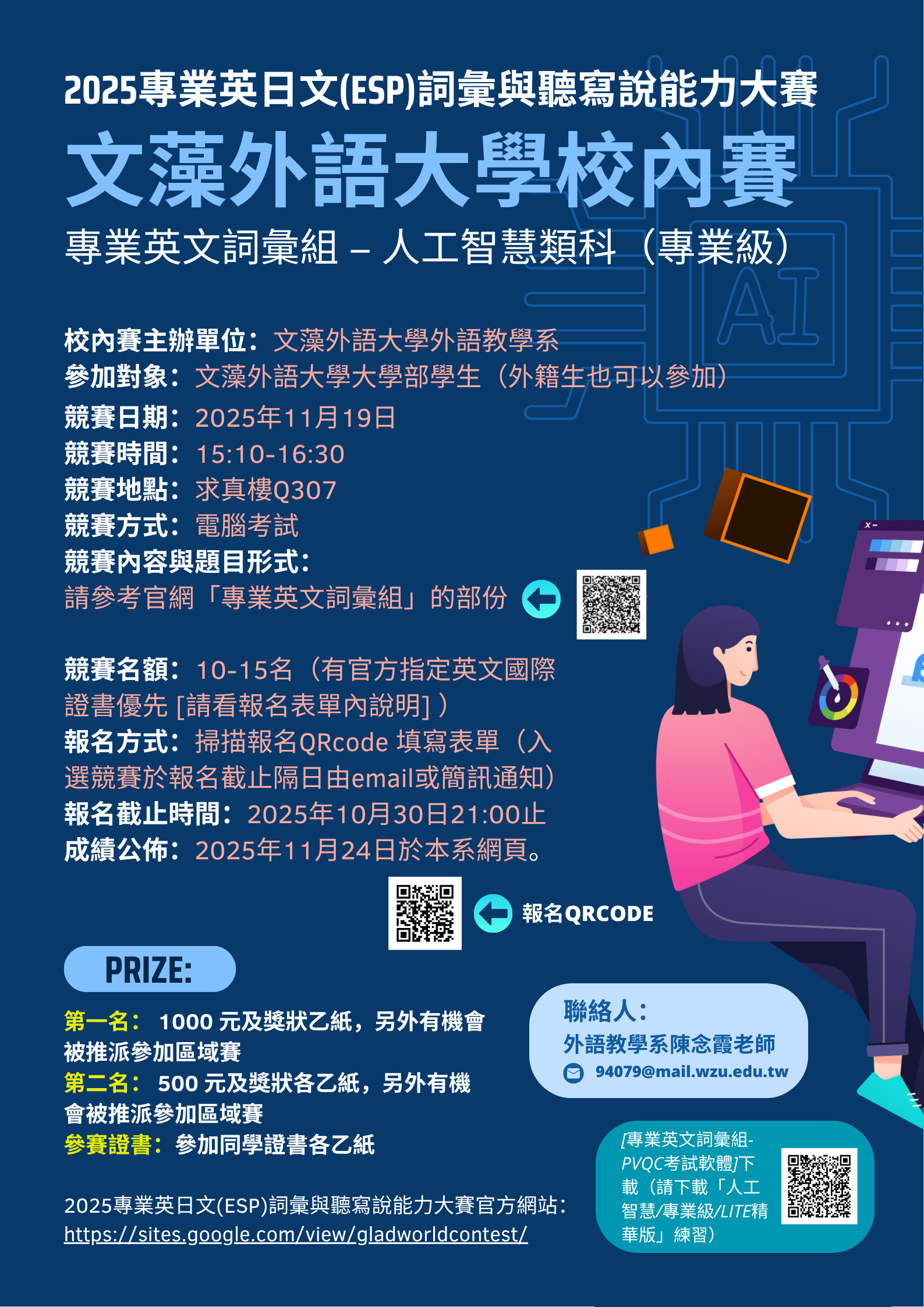 2025專業英日文(ESP)詞彙與聽寫說能力大賽(文藻外語大學校內賽)