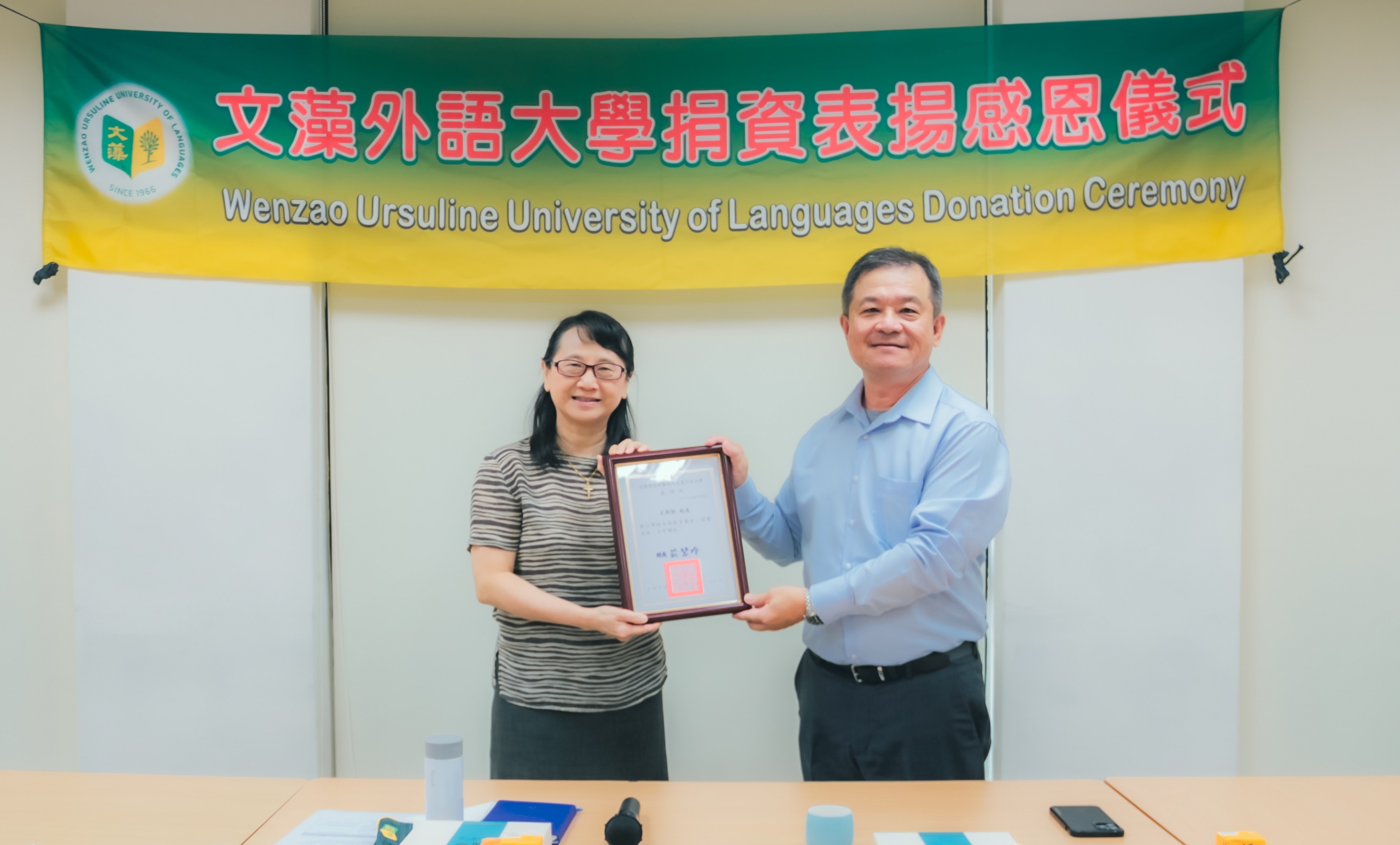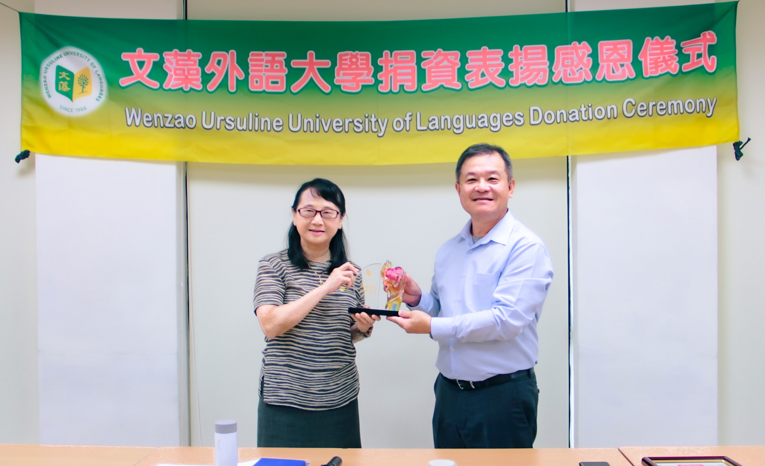 文藻外語大學英文系校友王師凱(五專第15屆),為了回饋母校,特別選在畢業40周年這一天,慷慨捐贈新台幣300萬元,協助母校推動人工智慧(AI)相關事務,造福校內教職員及學生。文藻外大28日特別舉行捐資表揚暨感恩儀式,由校長莊慧玲代表學校頒贈感謝狀及紀念獎座予王師凱校友,場面氣氛溫馨。