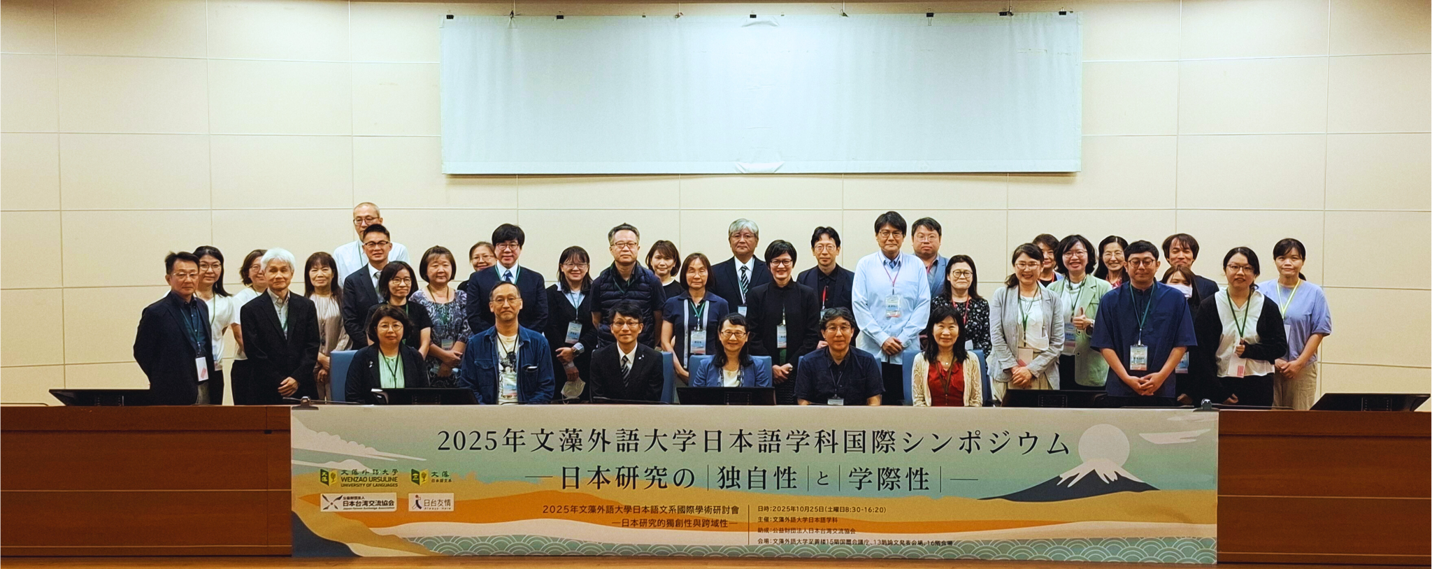 文藻外語大學舉辦2025日語國際學術研討會,與會學者合影留念,圖中為莊慧玲校長。 相片提供/日文系