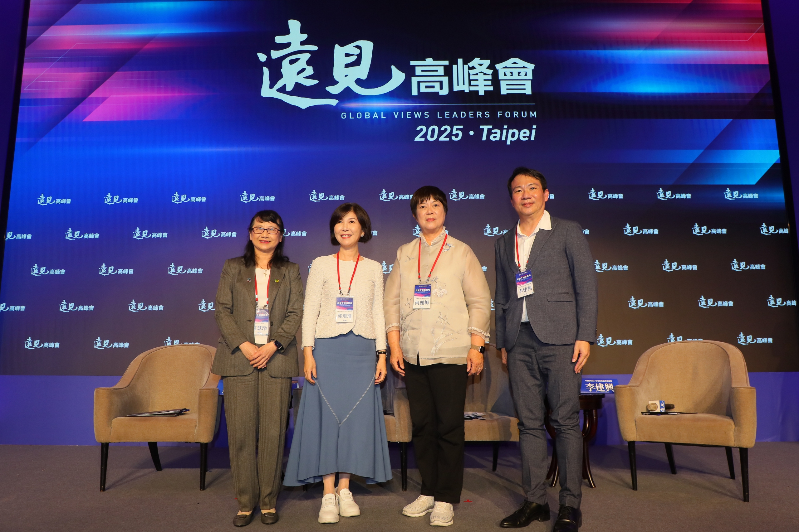 文藻外語大學校長莊慧玲(左起)、台達品牌長暨台達電子文教基金會副董事長郭珊珊、台積電企業永續資深副總經理何麗梅、《遠見雜誌》副社長兼智庫總編輯李建興,共同探討永續浪潮的策略與行動。圖/蘇義傑攝