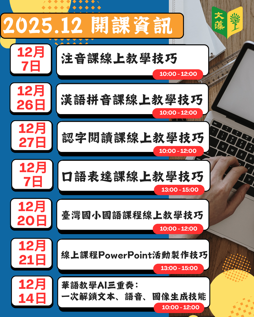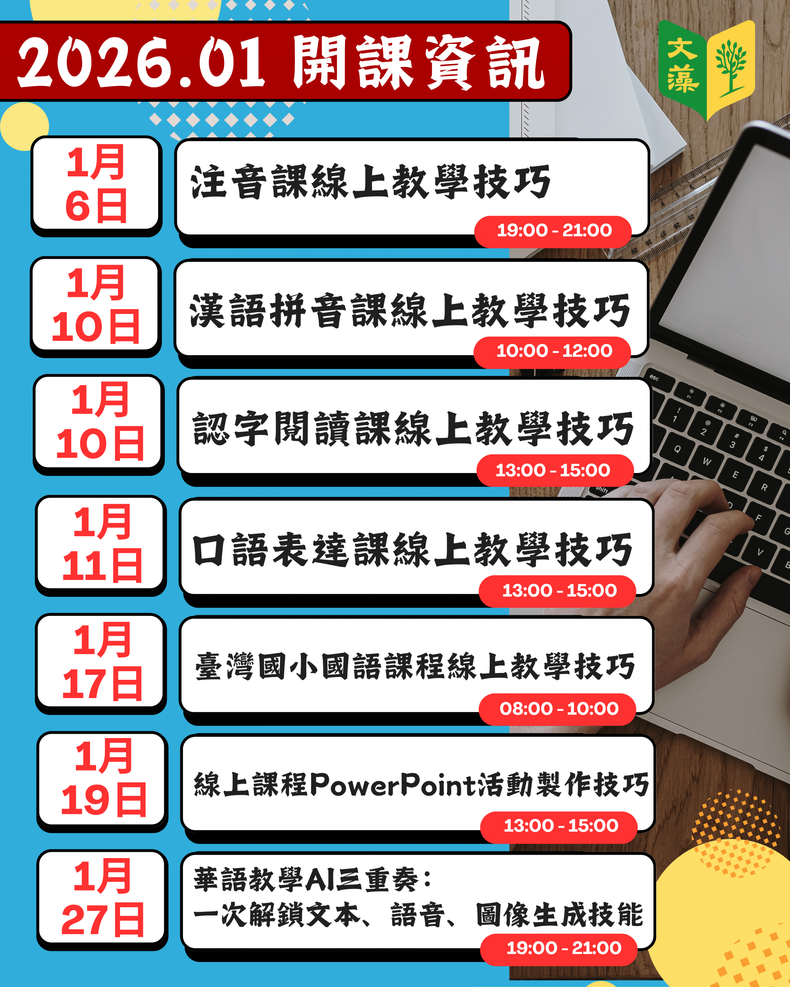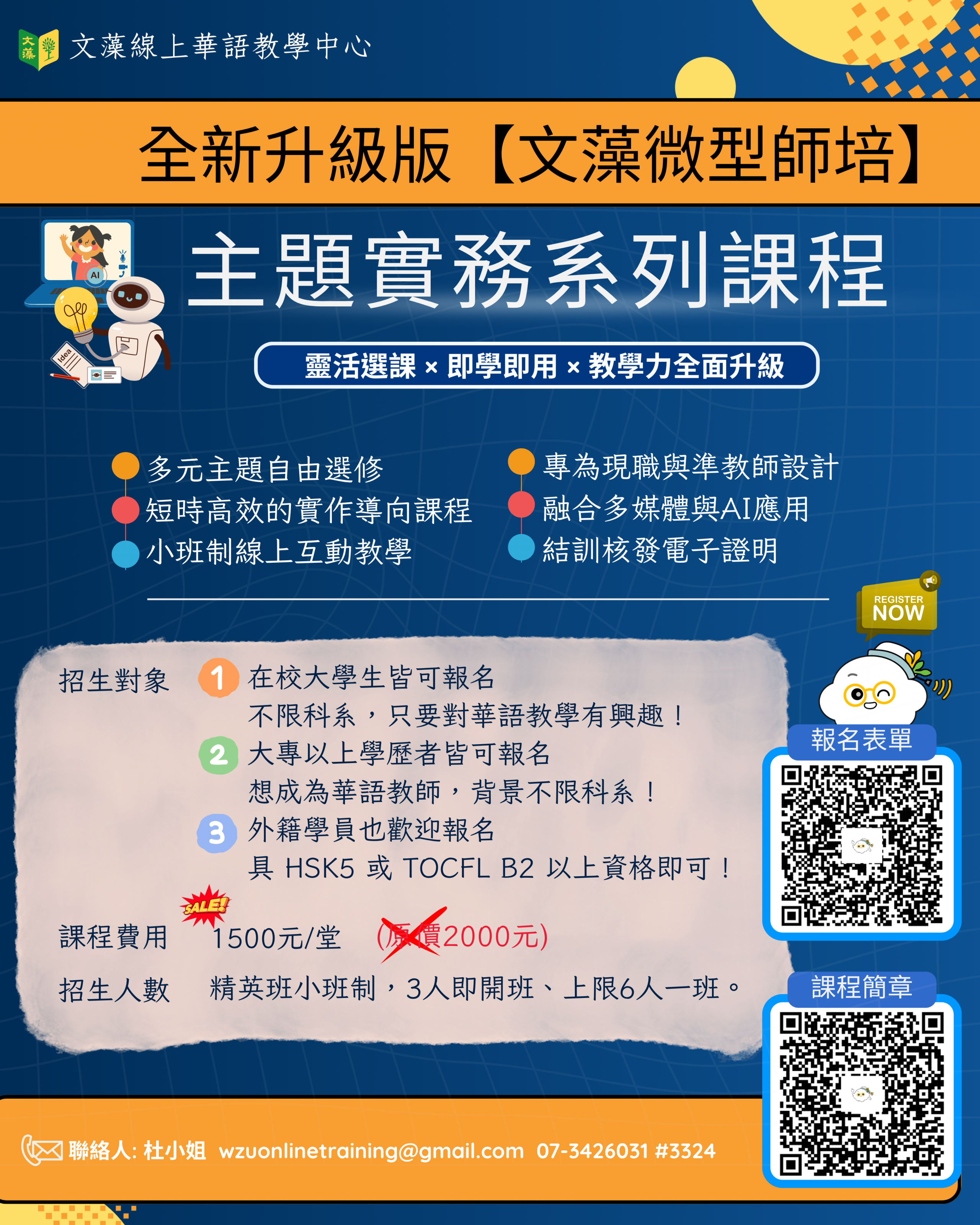 文藻線上華語教學中心 | 微型師資培訓主題系列課程 開放報名中