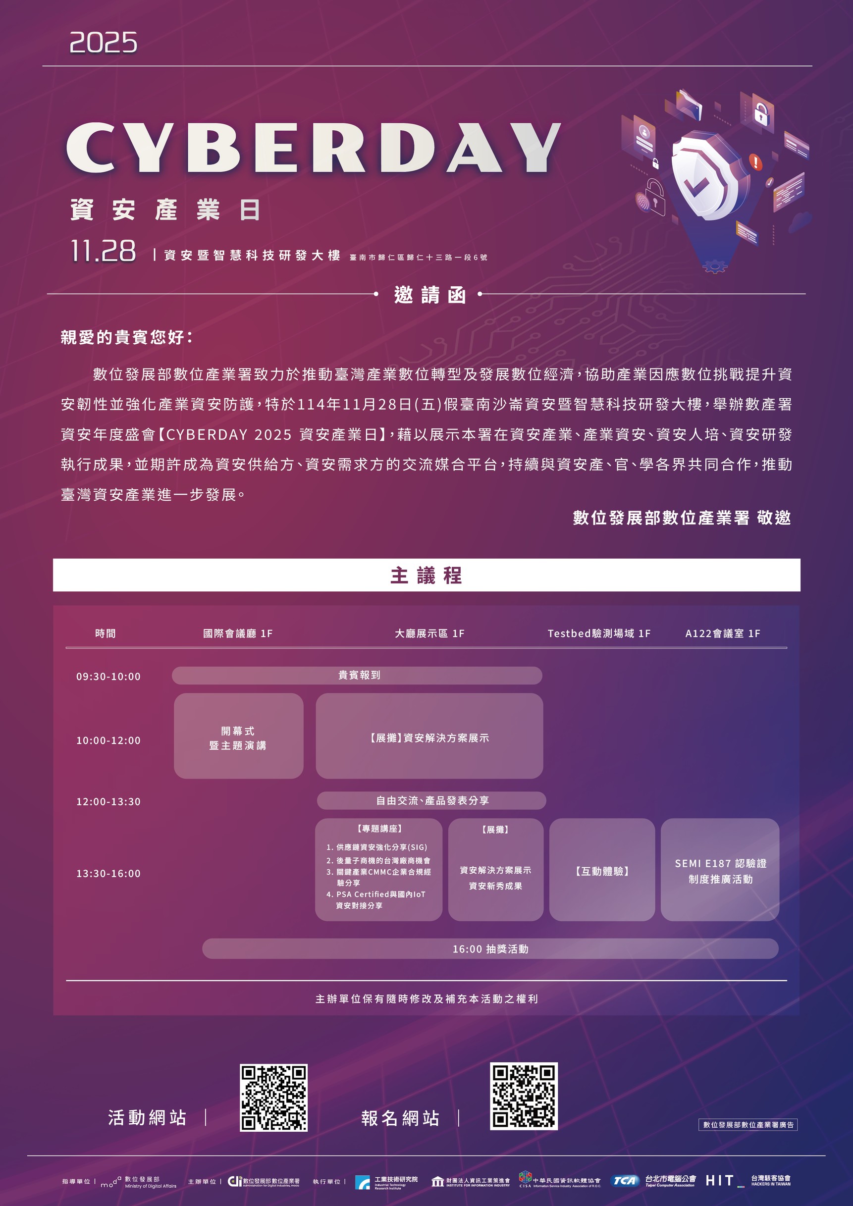 五、歡迎報名「CyberDay 2025資安產業日」,活動報名網址:https://www.cyberday.com.tw/報名時間:自即日起至11月27日(四)止。