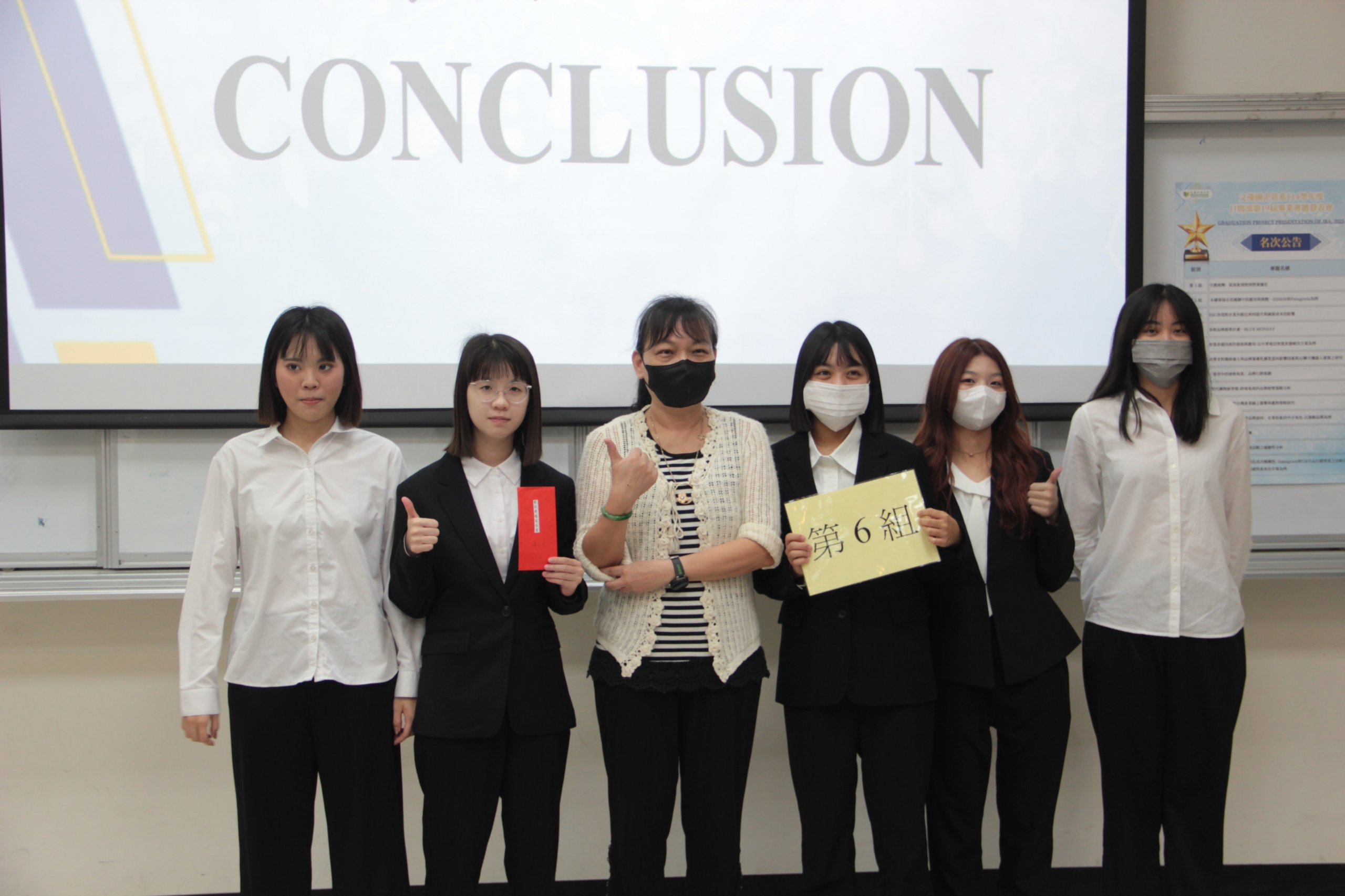 競賽結果揭曉,「美國關稅調整對台灣產業鏈之衝擊與應對策略研究」專題組奪得冠軍、第二名為「ESG表現對企業外銷比率提升與融資成本影響」專題、第三名則由「企業社會責任與消費者品牌認同:企業形象的中介角色─以運動品牌為例」專題獲得。