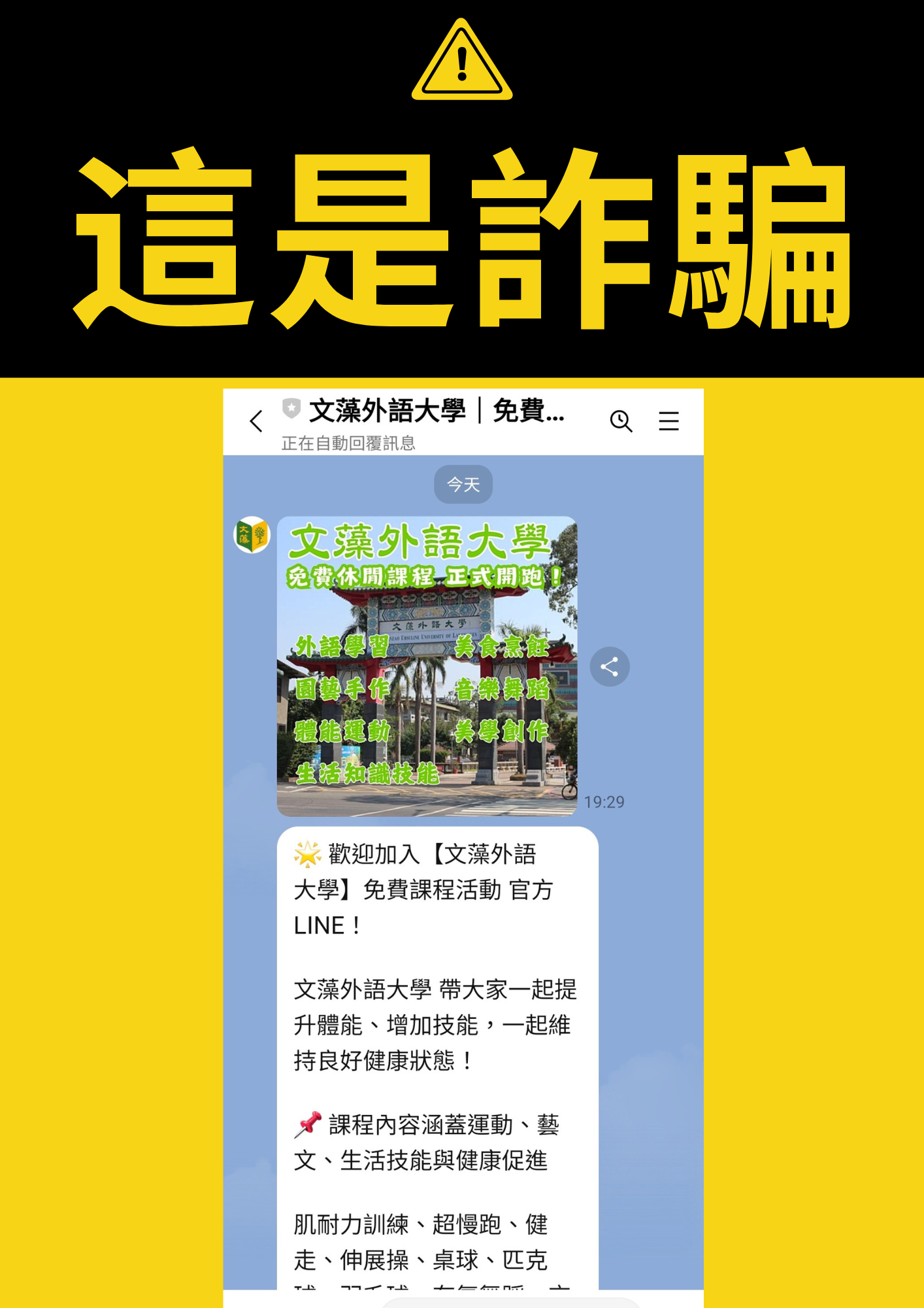 目前發現有不明「官方帳號」冒用文藻名義進行聯繫,
