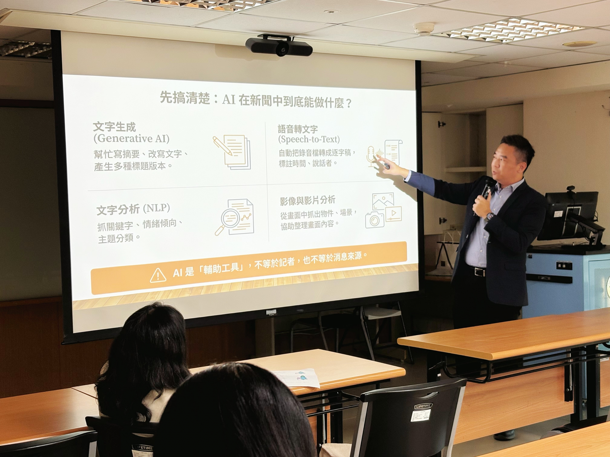 而在專業主持訓練課程中,學生透過AI發想腳本並調整語音表現,有效提升稿件修正效率與語音表現穩定度。英文系教授吳秋慧亦分享,在人文與跨文化溝通課程中,引導學生檢視AI生成內容中潛藏的文化偏見與倫理議題,提醒在提升AI應用能力的同時,仍須培養學生於多元文化與AI時代中的敏感度與判斷力。