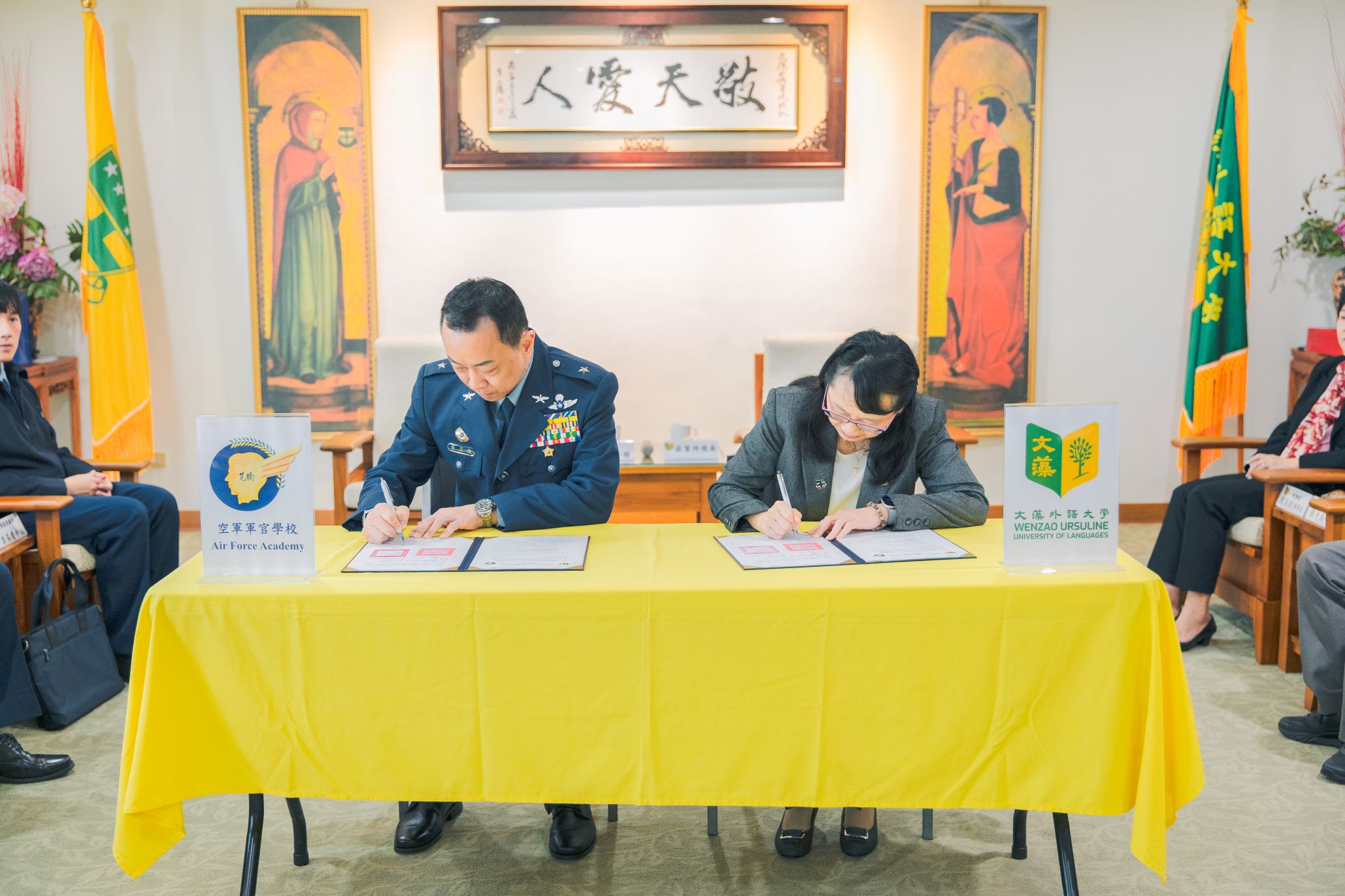 簽約儀式在文藻外語大學舉行,由文藻校長莊慧玲與空軍官校校長黃盈捷代表簽署,未來雙方將推動大學部跨校選修課程、教師與人員交流、專家協同教學,以及學生專業課程、營隊與培訓活動等合作交流項目。