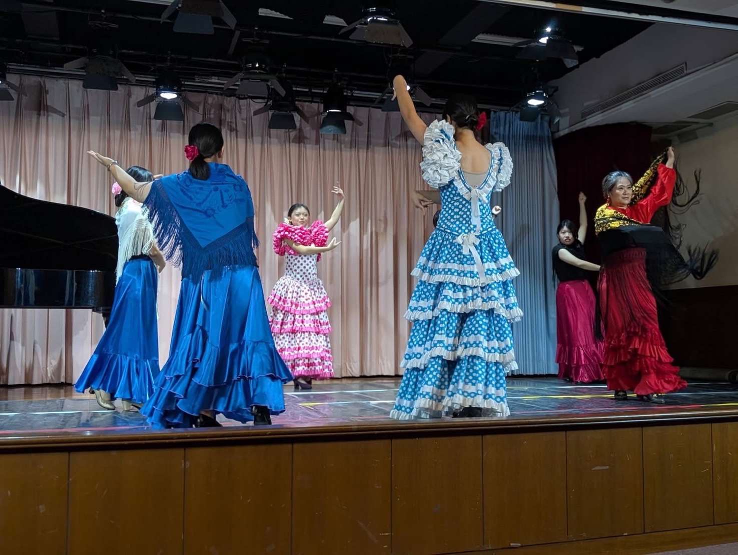 隨後由國立臺南藝術大學鋼琴合作藝術研究所的「室內樂作品詮釋」課程學生,演奏多首西班牙作曲家經典作品,透過細膩而富情感層次的音樂詮釋,帶領觀眾走進伊比利半島的音樂世界。另外,還有專業的佛朗明哥舞老師親自領舞,與文藻西文系學生共同演出。舞者鏗鏘有力的舞步、強烈鮮明的節奏,以及充滿張力的肢體語言,充分展現佛朗明哥舞蹈熱情奔放、情感深沉的藝術精神,現場掌聲不斷。