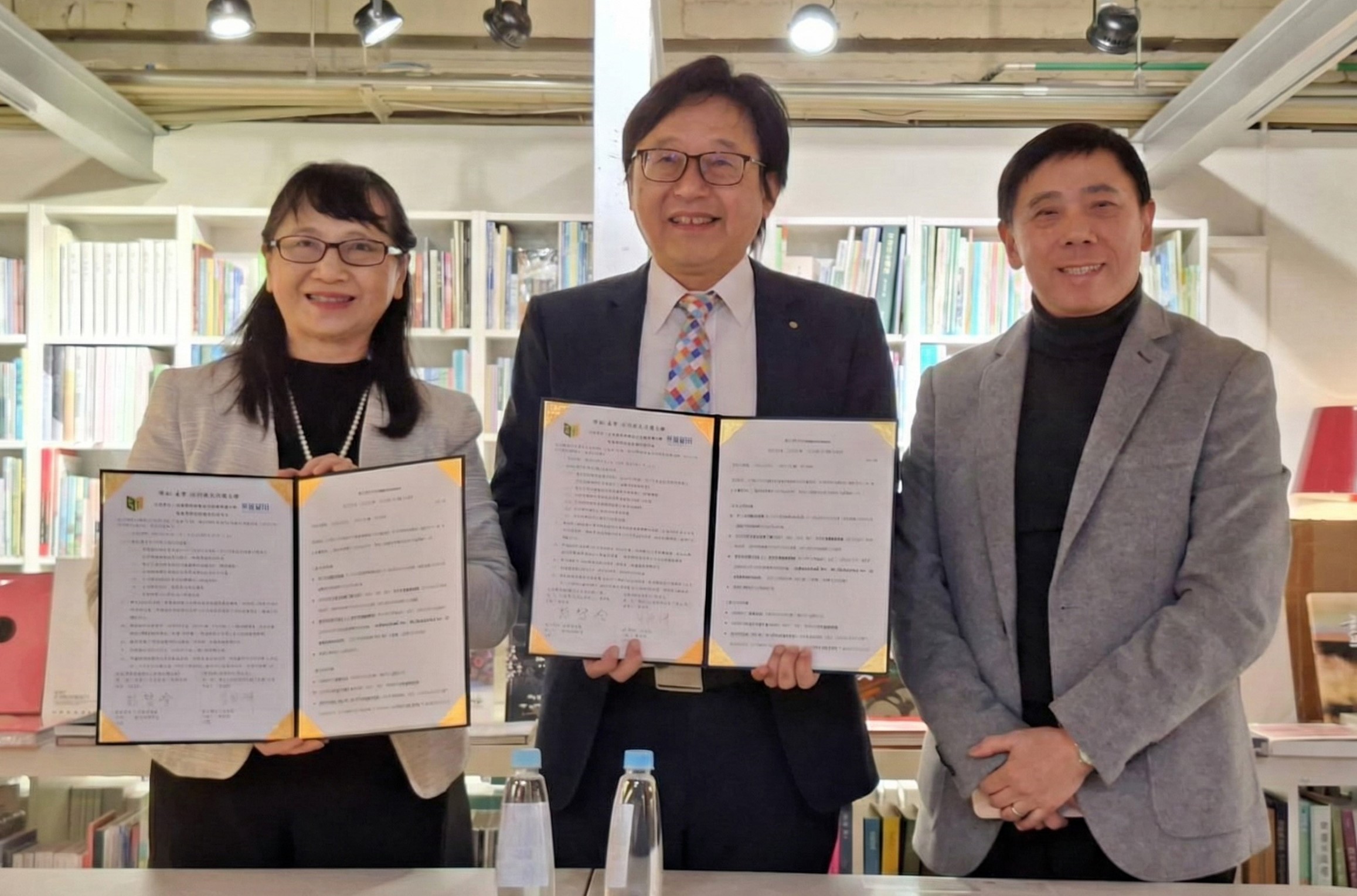 (圖左起)莊慧玲校長、秀威資訊科技公司宋正坤總經理及見證人中央通訊社數位新聞中心羅廣仁主任編輯。 |