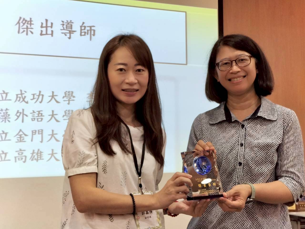 文藻外大法文系王秀文老師(右)獲得「南區傑出導師獎」 |