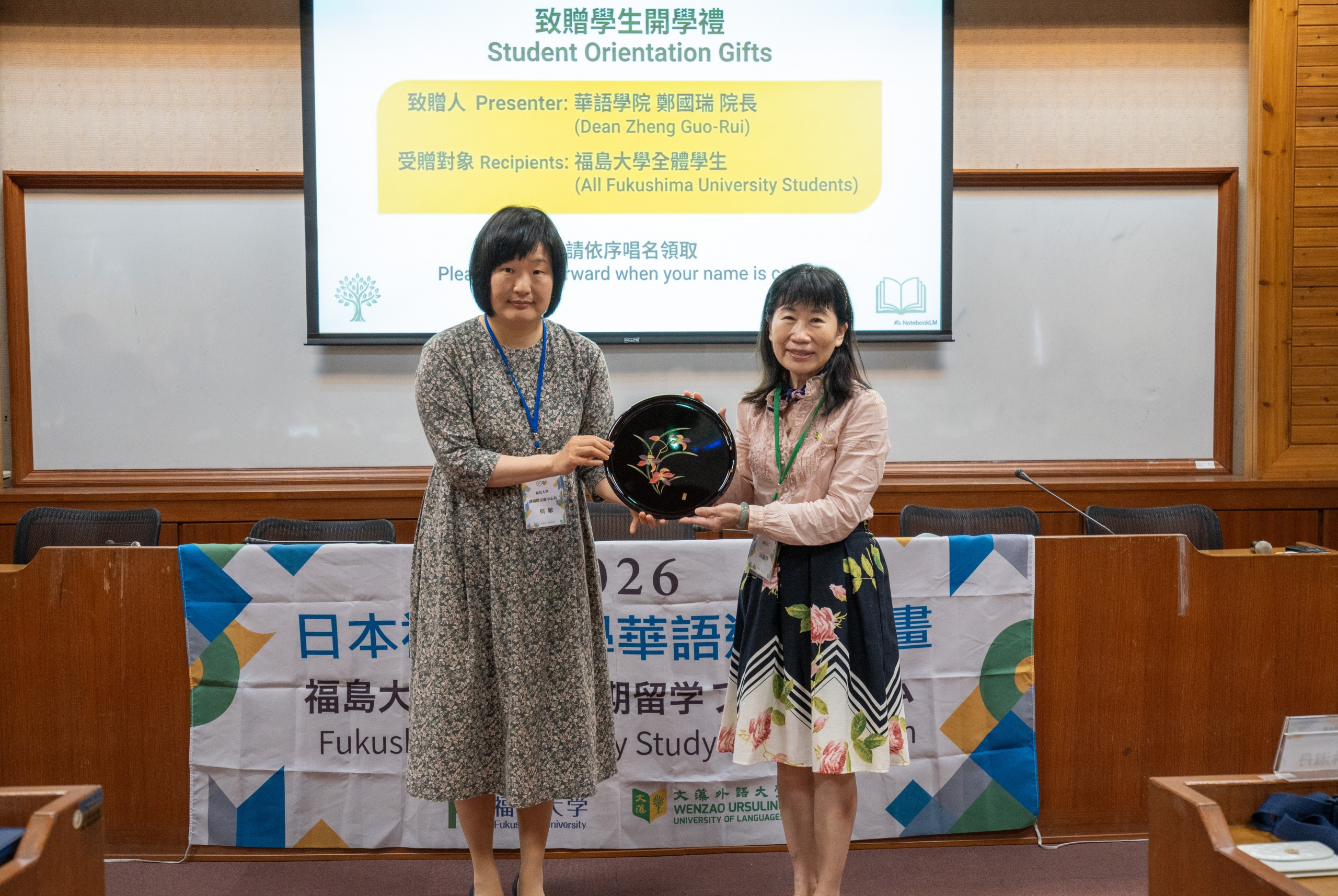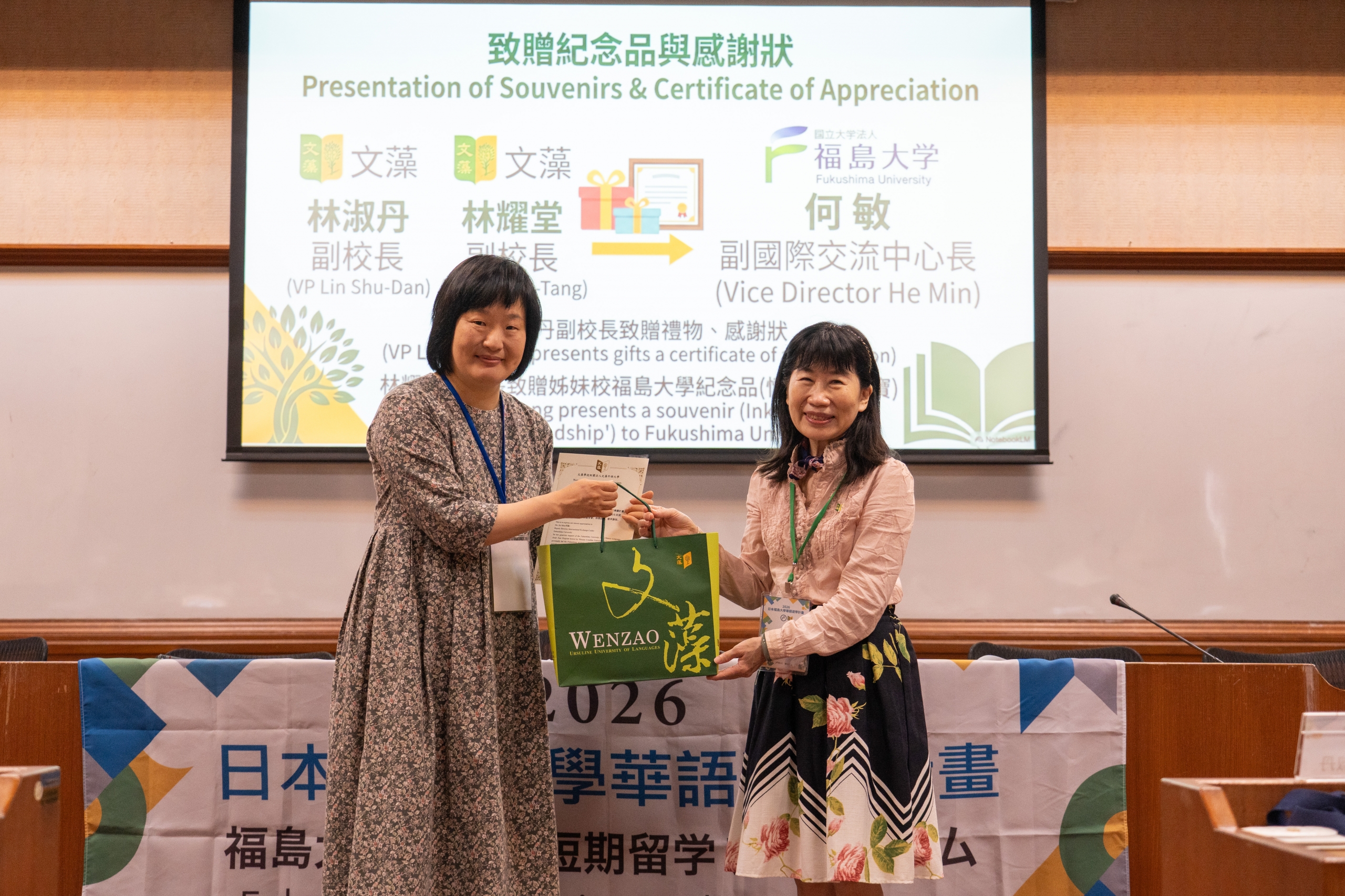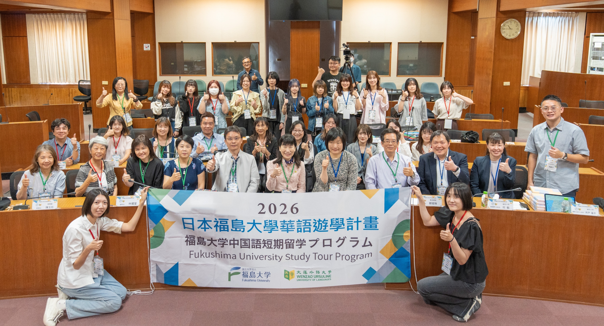 文藻外語大學特別舉辦一場開幕儀式,熱情迎接福島大學師生。開幕現場由文藻副校長林淑丹、副校長林耀堂、華語學院院長鄭國瑞及文藻校內主管及師生一同參與。文藻校長莊慧玲因出國訪問,所以透過預錄影片歡迎福島大學師生到訪。莊校長表示,兩校多年來持續推動師生互訪與交換學習,累積良好合作基礎,期盼此次華語遊學團能進一步深化交流內涵,為未來多元合作奠定基礎。