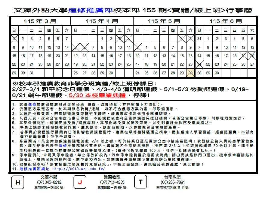 【校本部】155期<115年4-6月>推廣教育非學分班課程簡章~熱烈招生中! Class information on main campus