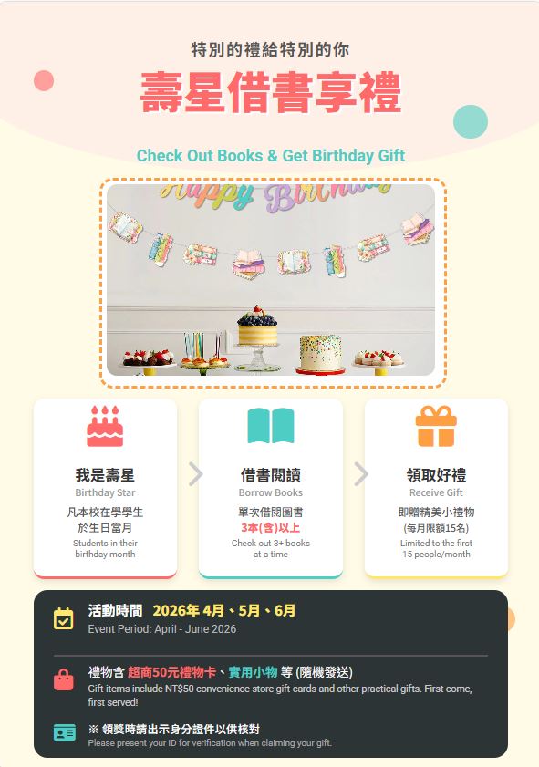 [圖書館]特別的禮給特別的你:壽星借書享禮 Check Out Books & Get Birthday Gift