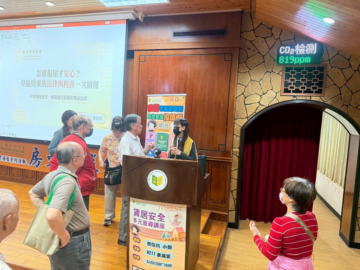 講座結束後,房東向講師熱烈詢問。 |