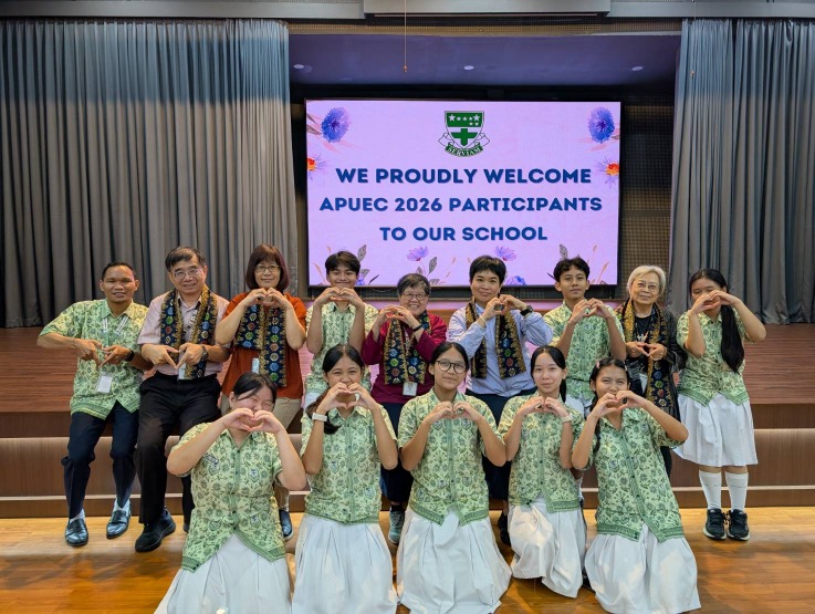 APUEC會議安排分組參觀St. Theresia School 並與該校學生們開心合影 |