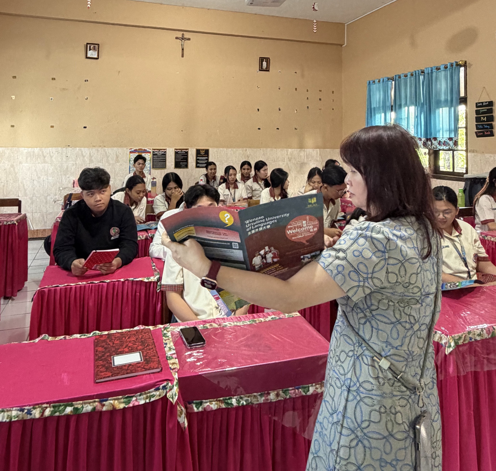 行程最後前往北印尼蘇拉威西Manado地區,拜訪克拉巴特大學(Universitas Klabat,UNKLAB),雙方針對雙聯學位、交換學生及教師合作。同時,文藻團隊也拜訪Don Bosco High School與Rex Mundi High School兩所知名天主教高中,並完成合作簽約,成功拓展文藻於印尼高中端之合作網絡。Manado 地區約半數人口具華人血統,多信奉天主教,對華語教育及吳甦樂教育理念接受度高。本次合作將推動短期交流、華語研習與升學銜接,強化文藻國際招生動能。