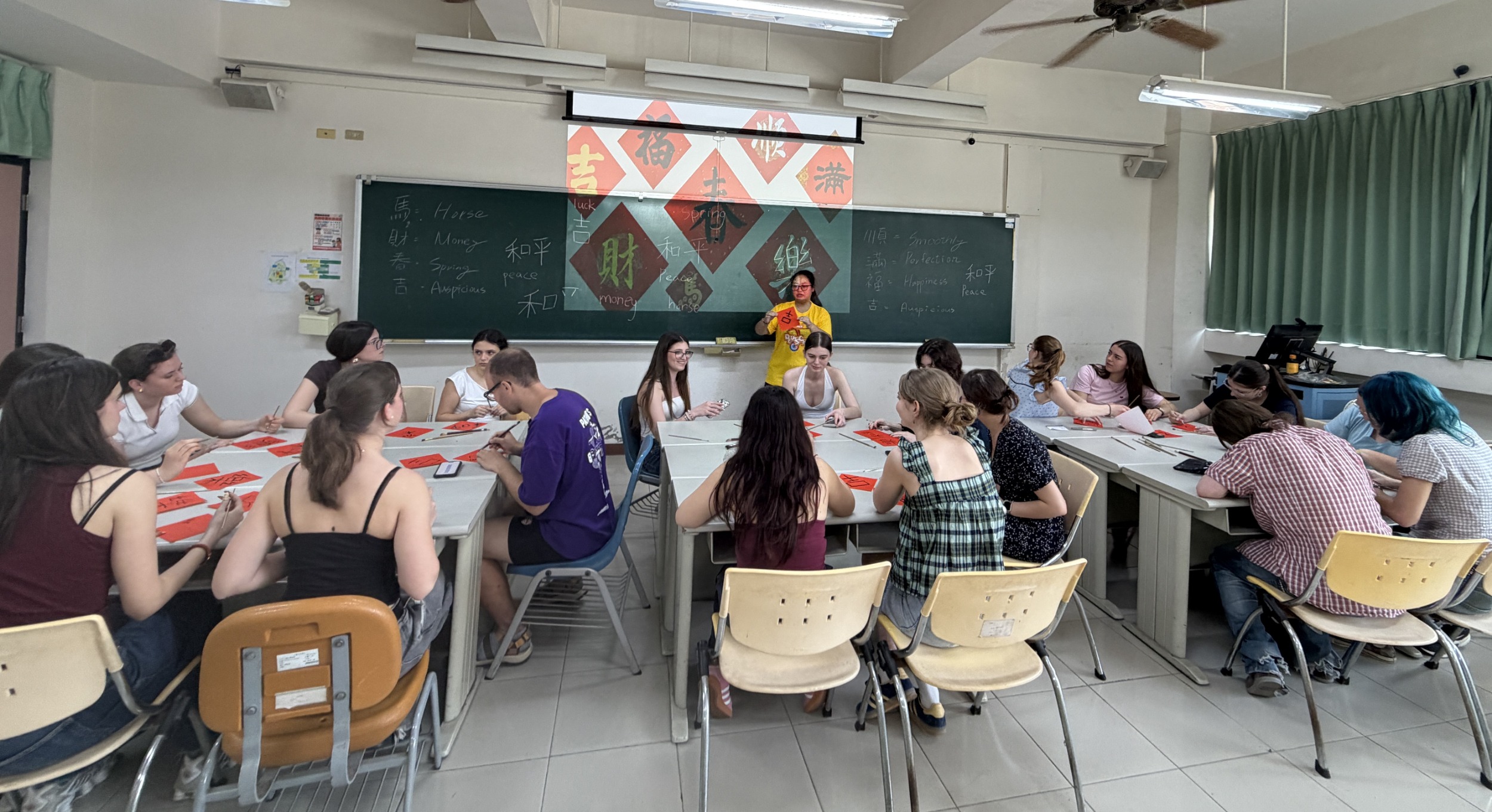 德國姊妹校師生體驗春聯書寫,初步認識中文書寫與文化意涵。 |