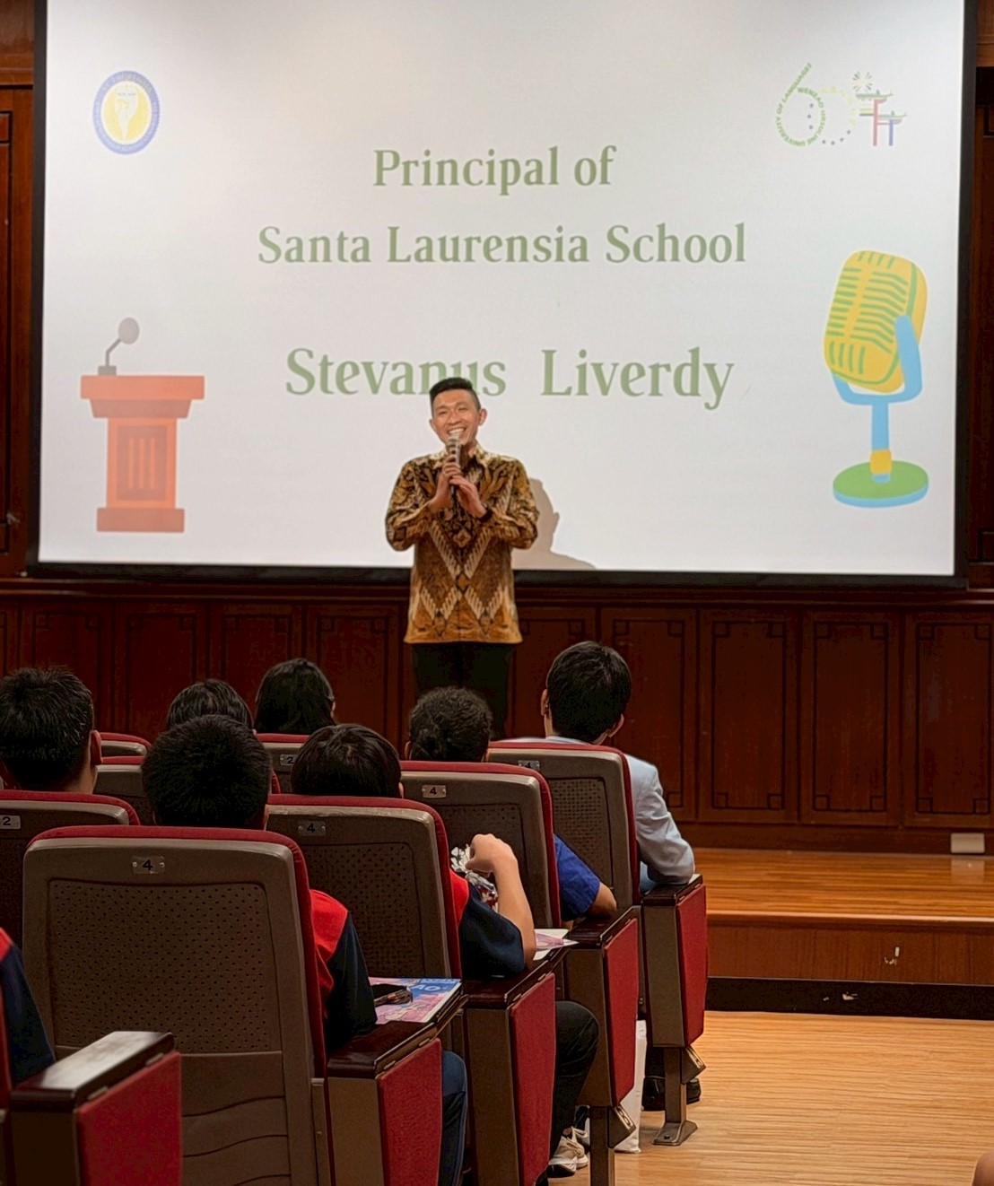 St. Laurensia School Stevanus Liverdy校長於活動中致詞,表達對此次蒞校交流的感謝,並期盼深化與文藻的教育合作。 |