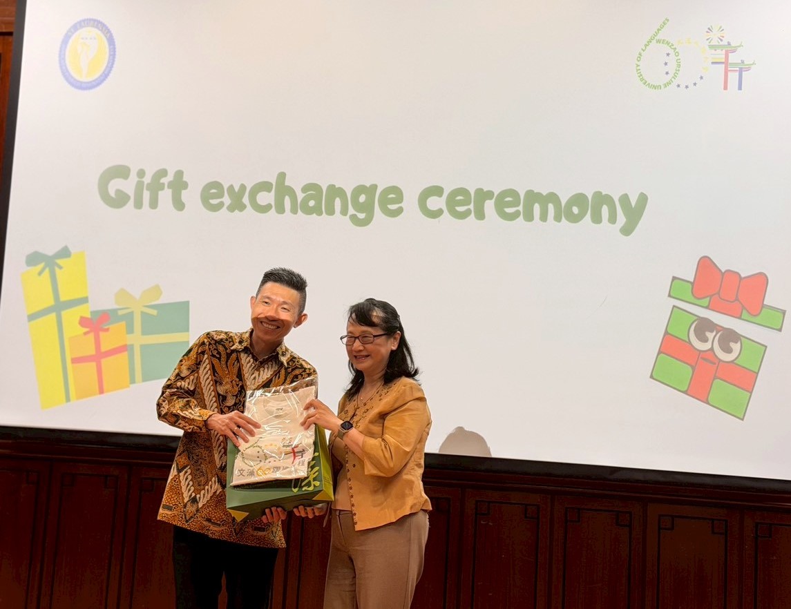 文藻與印尼St. Laurensia School互換禮品,為此次台印校際交流留下珍貴紀念,並為未來交流合作開啟更多可能。 |