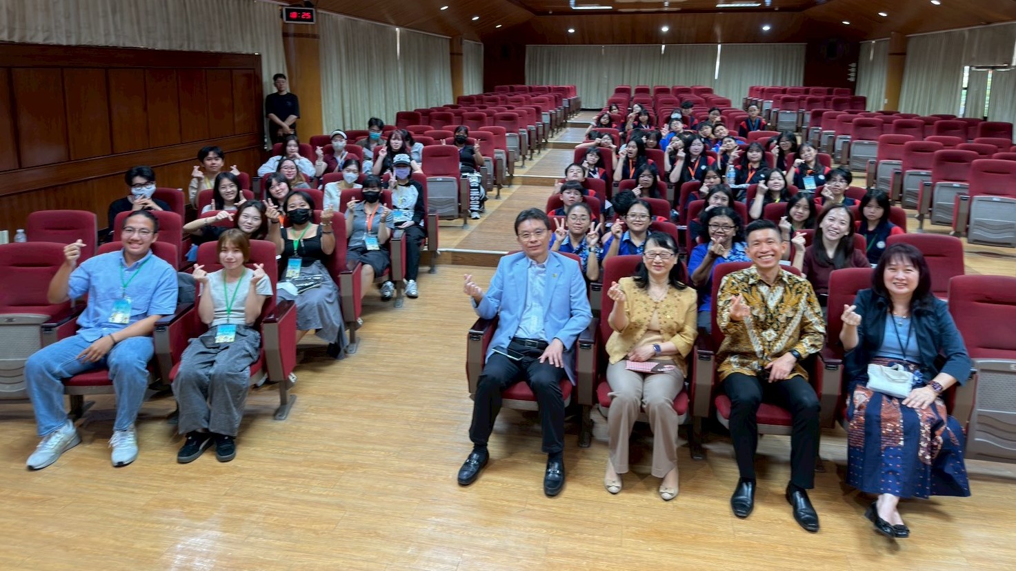 活動中安排文藻學生分享學習經驗,來自日本的佐佐木美優分享她在文藻學習華語及印尼語的歷程,以及在台求學生活。印尼籍五專生周凱文則介紹修習英語與西班牙語的學習經驗及豐富校園生活。兩名學生從不同文化背景出發的真實分享,呈現文藻多語學習環境與國際化特色。