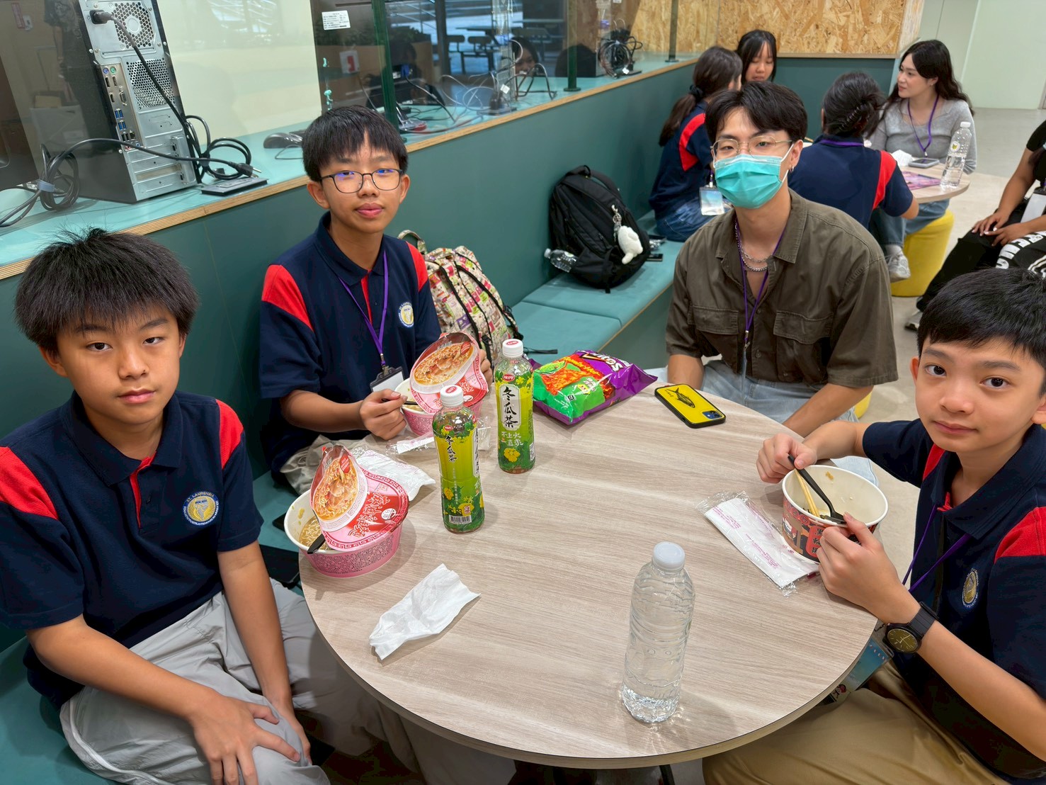 兩校學生於自主學習空間輕鬆互動,透過午餐與生活話題交流,拉近彼此距離。 |