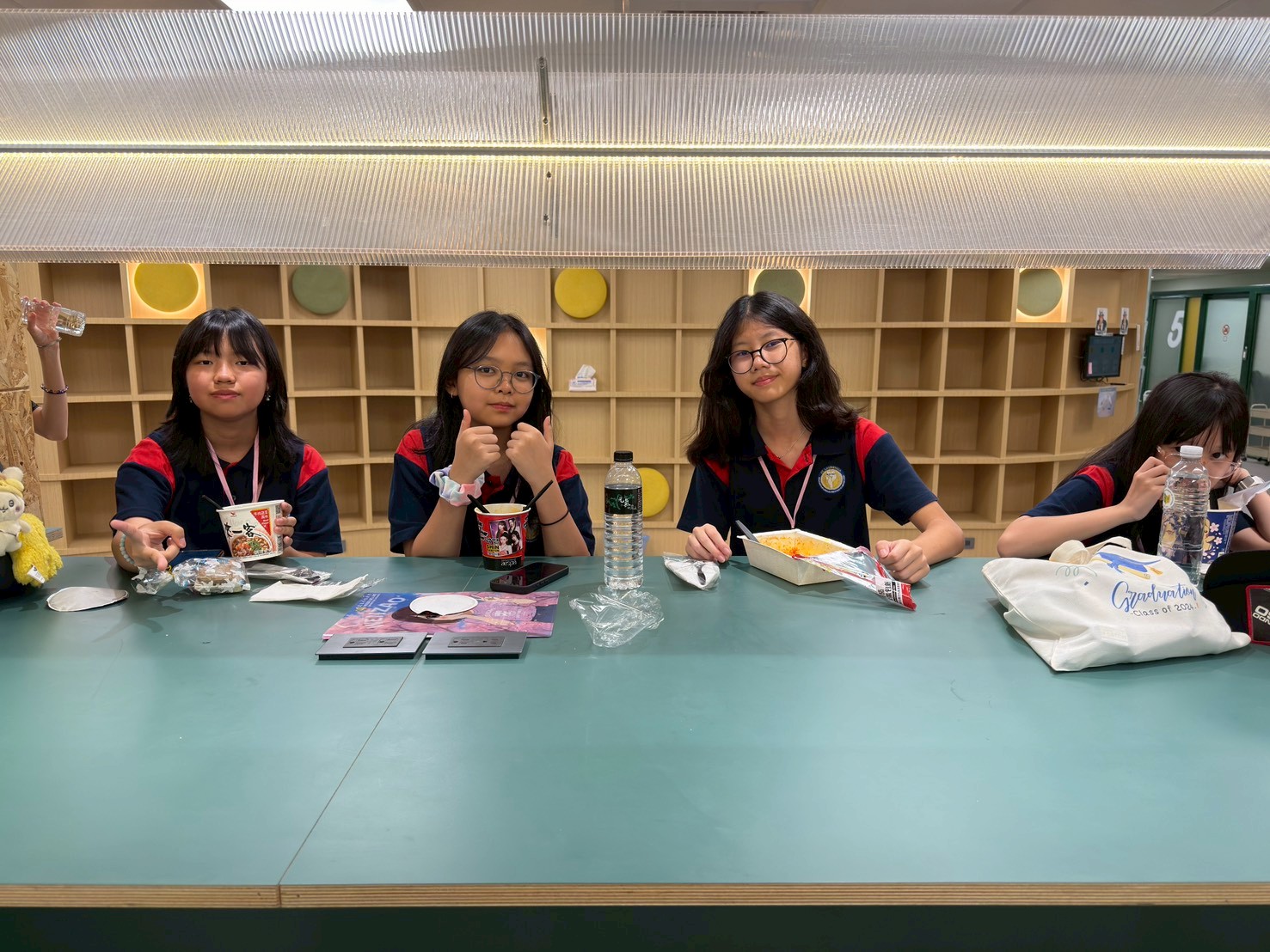 雙方學生於自主學習空間共進午餐,透過自然對話與互動,展現跨文化交流的溫馨氛圍。 |