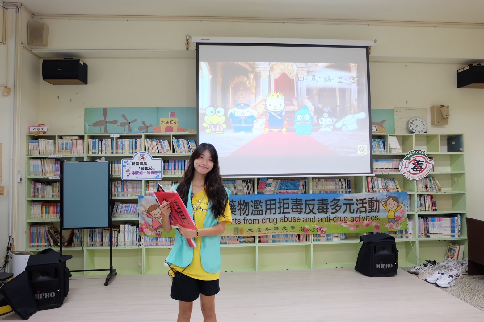 陳與潔擔任反毒宣導活動負責人,帶領隊員以戲劇演出將反毒觀念帶入小學,落實反毒意識基石。 |