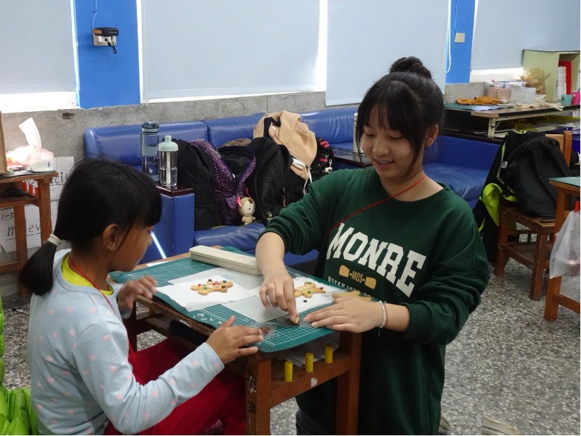 賈綵婕協助小朋友製作家政課作品-薑餅人 |
